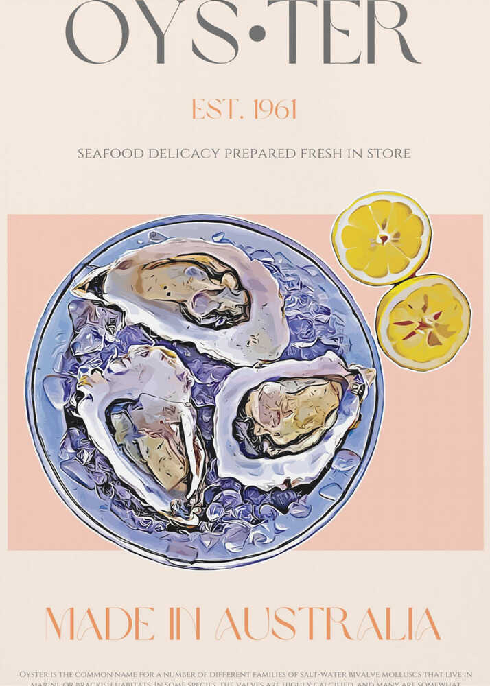 Fresh Oysters with Lemon Slices | Poster