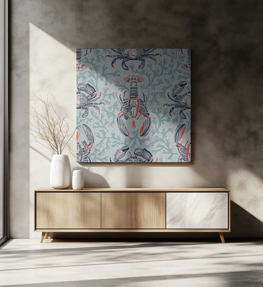 Motif menthe nostalgie côtière homard et crabe | Toile