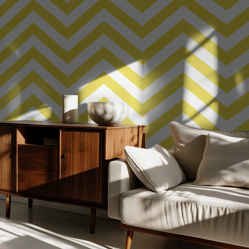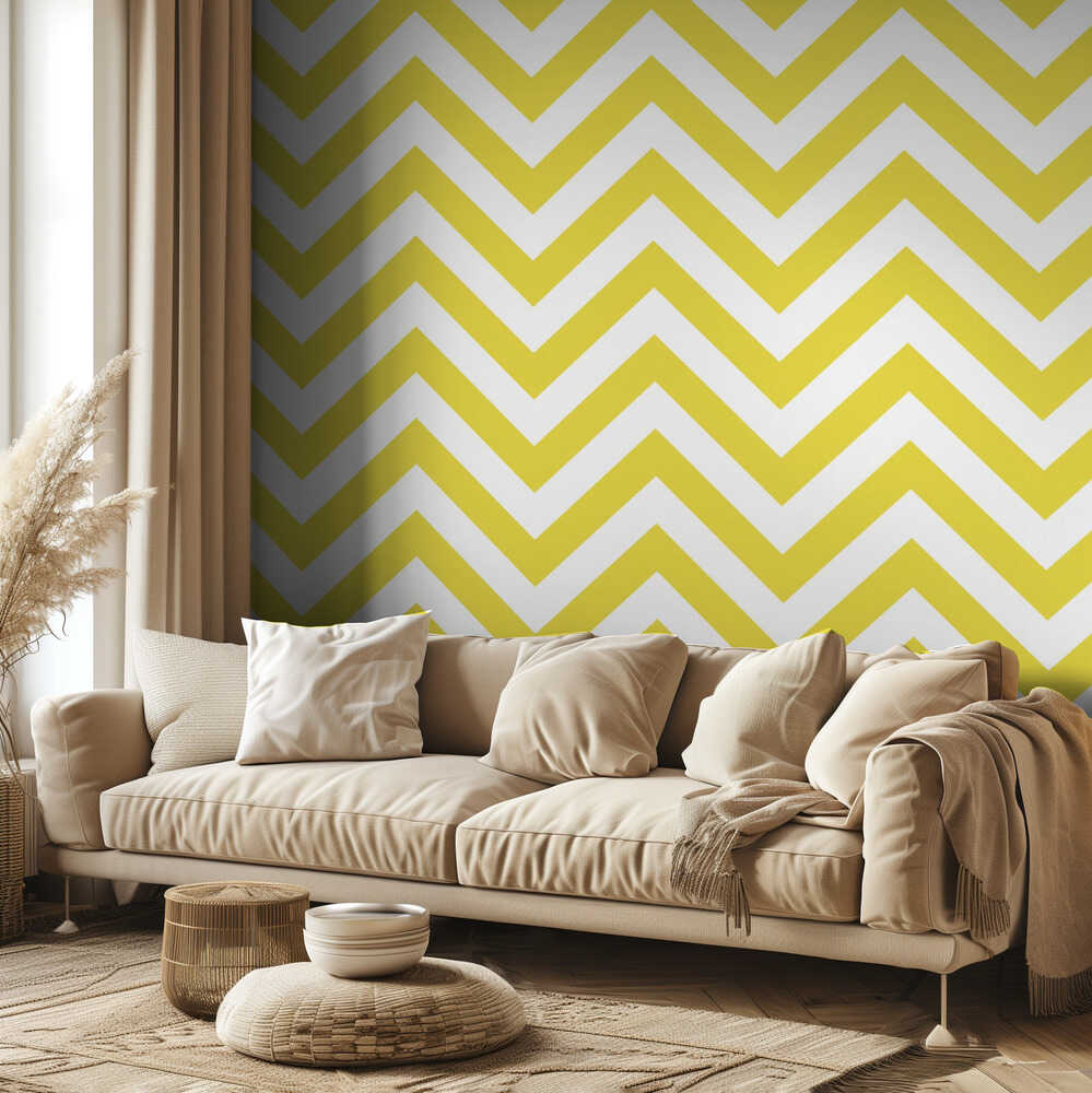 Chevron-Muster in Gelb und Weiß | Tapete