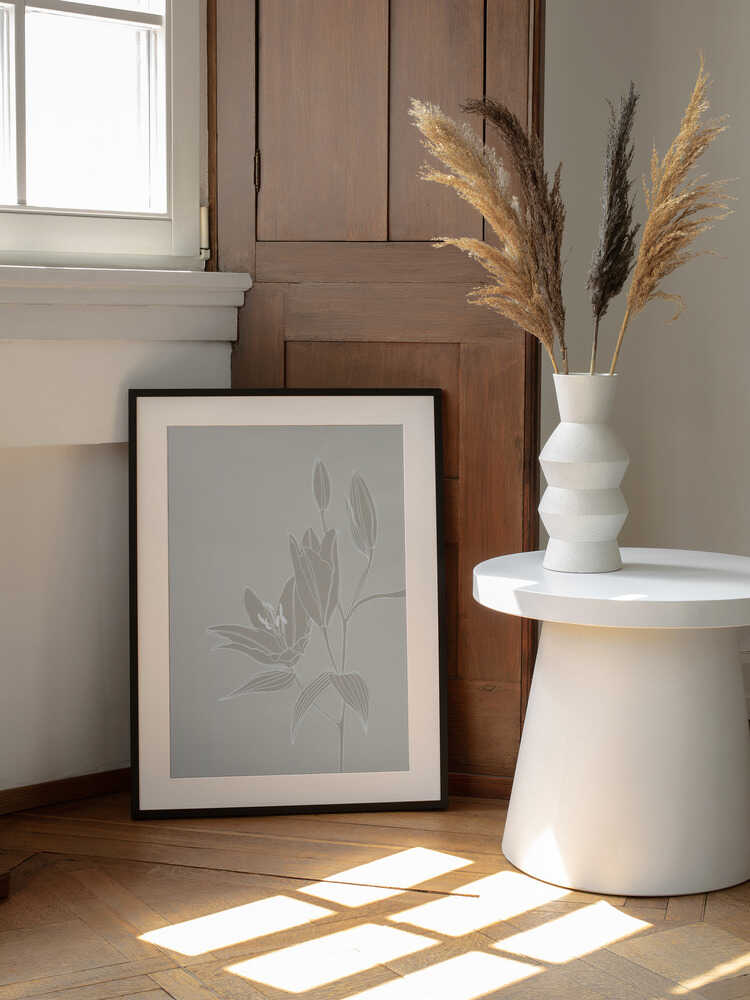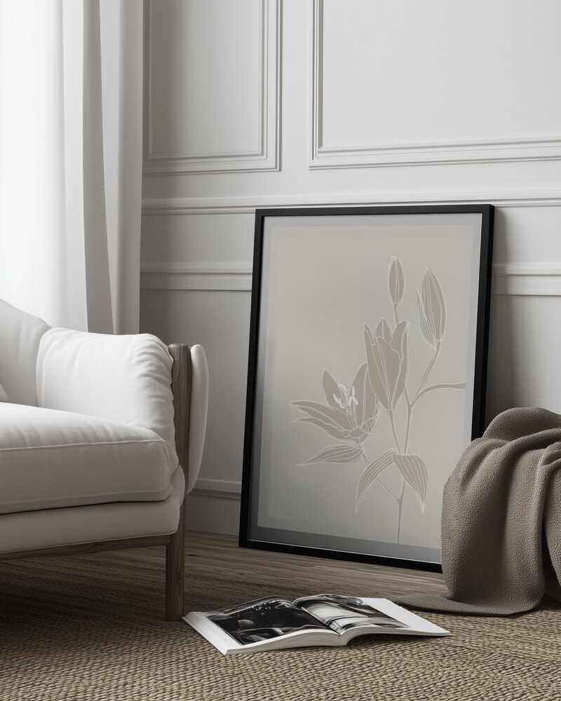 Strichzeichnung von Lilien in Weiß | Poster