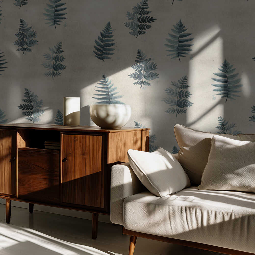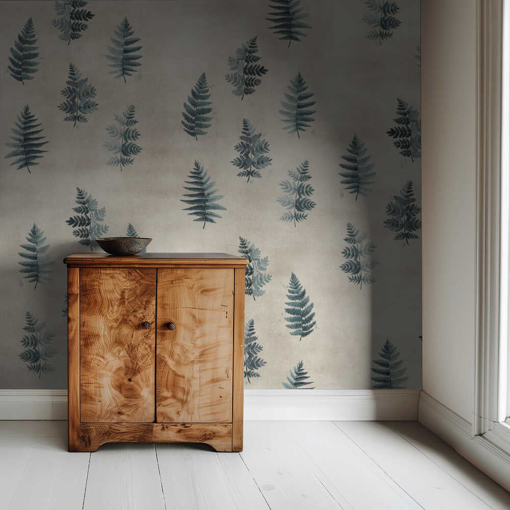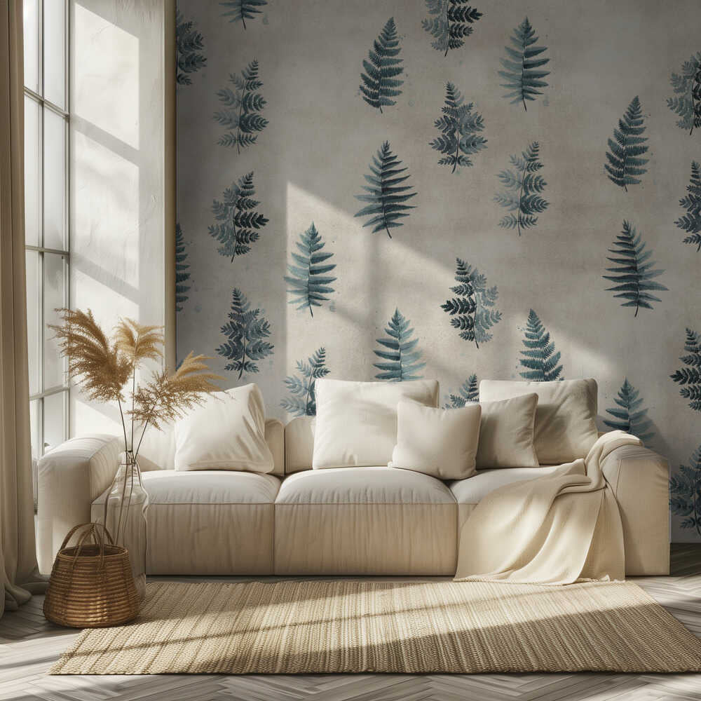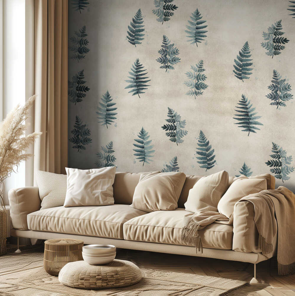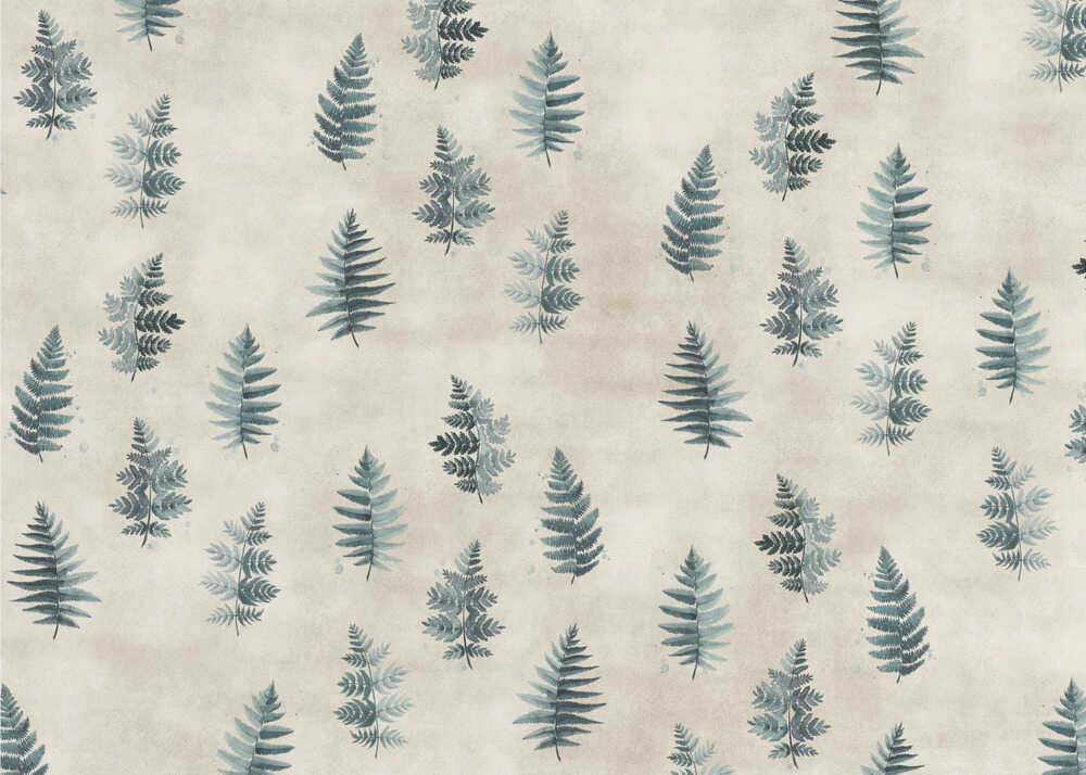 Türkisfarbenes Aquarell-Farnmuster | Tapete